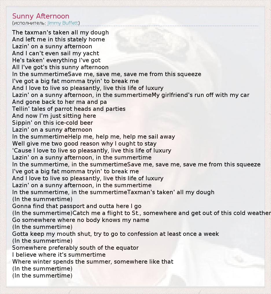А как ты думаешь, о чем песня "Sunny Afternoon" ?