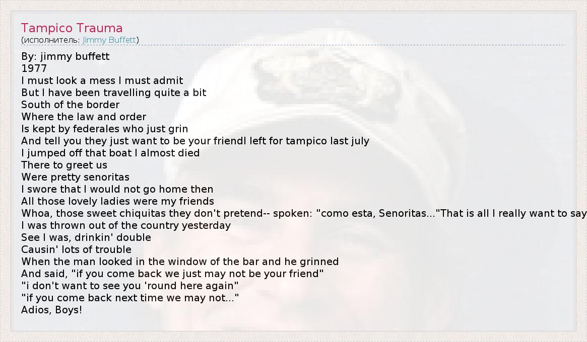 А как ты думаешь, о чем песня "Tampico Trauma" ?