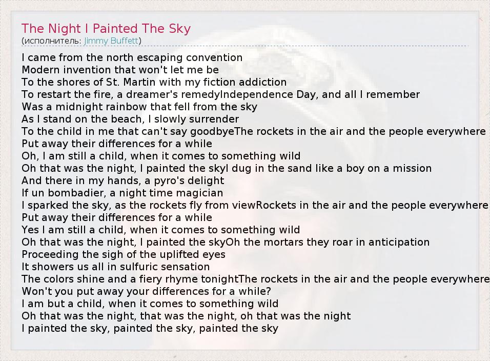 А как ты думаешь, о чем песня "The Night I Painted The Sky" ?