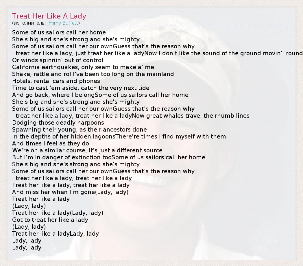 А как ты думаешь, о чем песня "Treat Her Like A Lady" ?