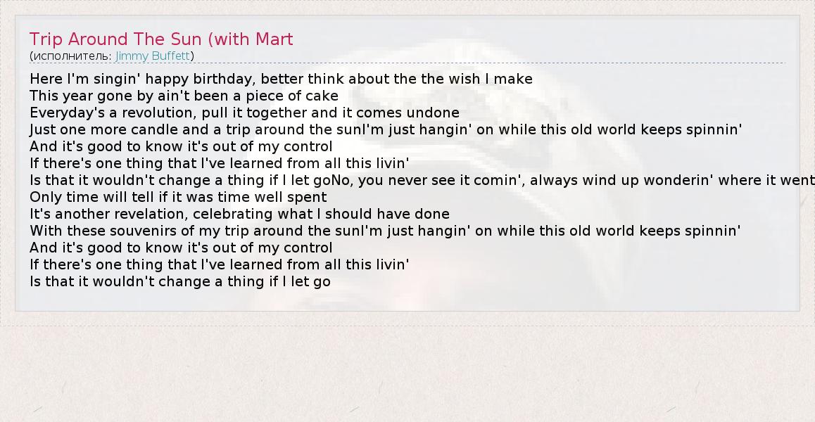 А как ты думаешь, о чем песня "Trip Around The Sun (with Mart" ?