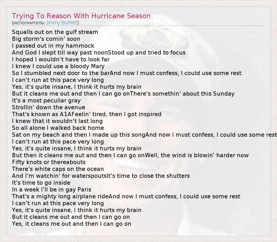 А как ты думаешь, о чем песня "Trying To Reason With Hurricane Season" ?