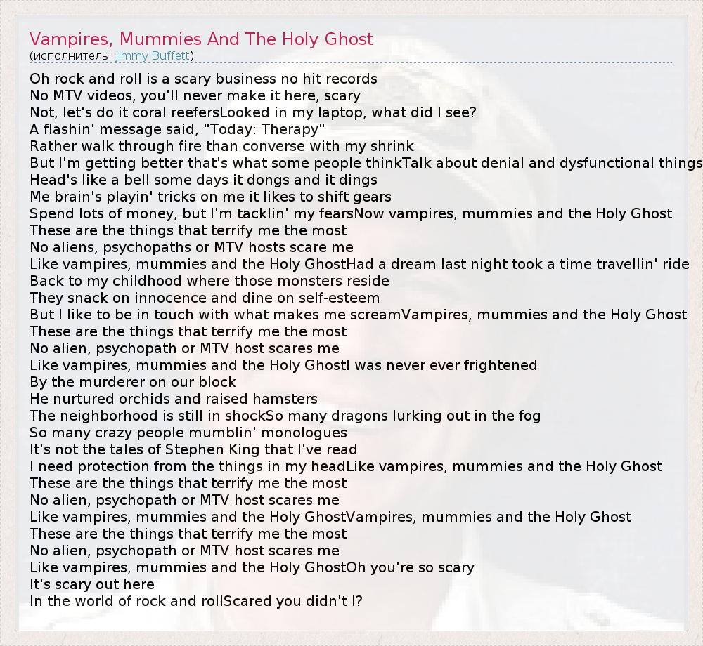 А как ты думаешь, о чем песня "Vampires, Mummies And The Holy Ghost" ?