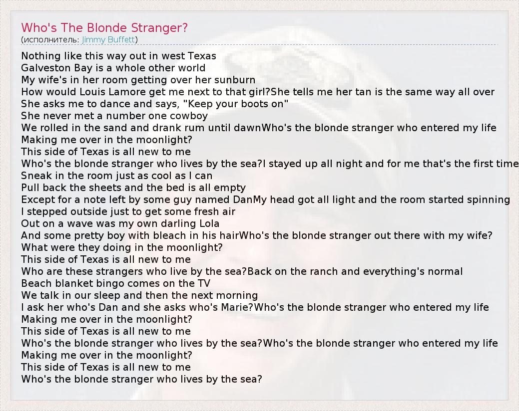 А как ты думаешь, о чем песня "Who's The Blonde Stranger?" ?