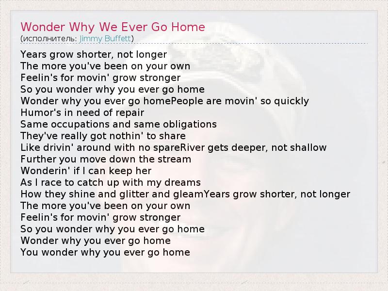 А как ты думаешь, о чем песня "Wonder Why We Ever Go Home" ?