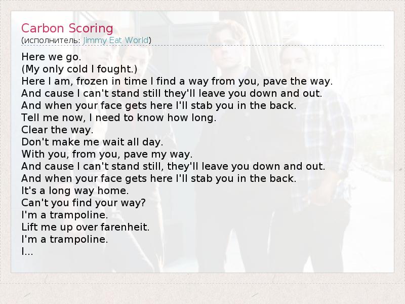 Это интересно:Группа была основана в городе Меса, штат Аризона в 1993 году. Вокалист и гитарист Джим Эдкинс и барабанщик Зак Линд, друзья еще с детского сада, объединили свои усилия с гитаристом Томом Линтоном и басистом Митчем Портером. Таким образом сформировался коллектив, получивший название Jimmy Eat World (Джимми Ест Мир). Первые годы группа подражала панк-рок стилю своих кумиров, записав Demo-кассету, семёрку... продолжение