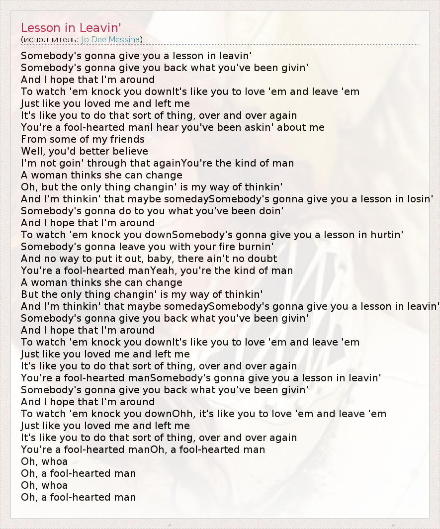 А как ты думаешь, о чем песня "Lesson in Leavin'" ?