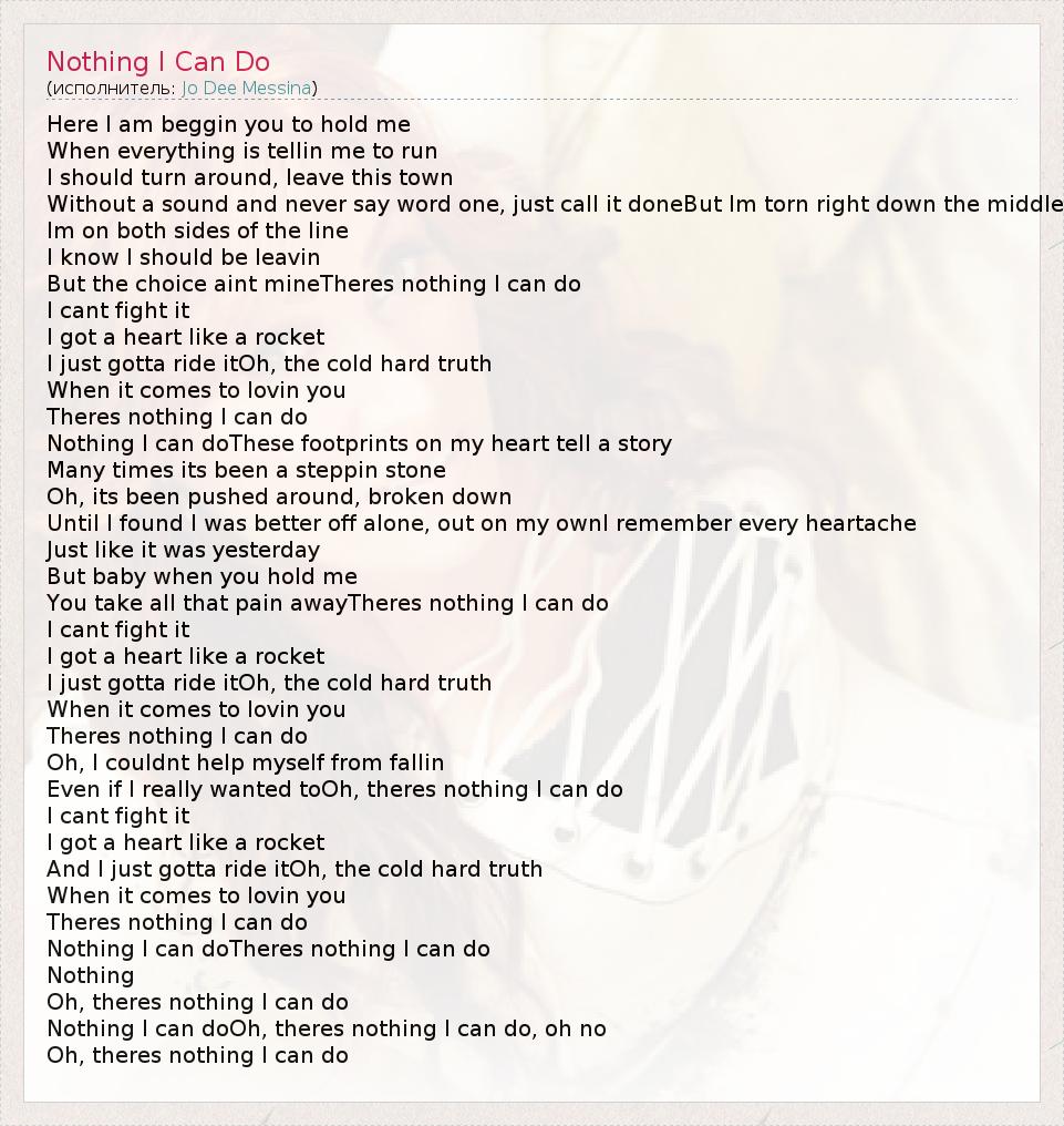 А как ты думаешь, о чем песня "Nothing I Can Do" ?
