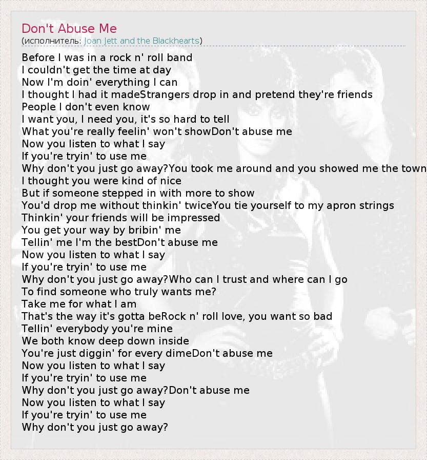 А как ты думаешь, о чем песня "Don't Abuse Me" ?