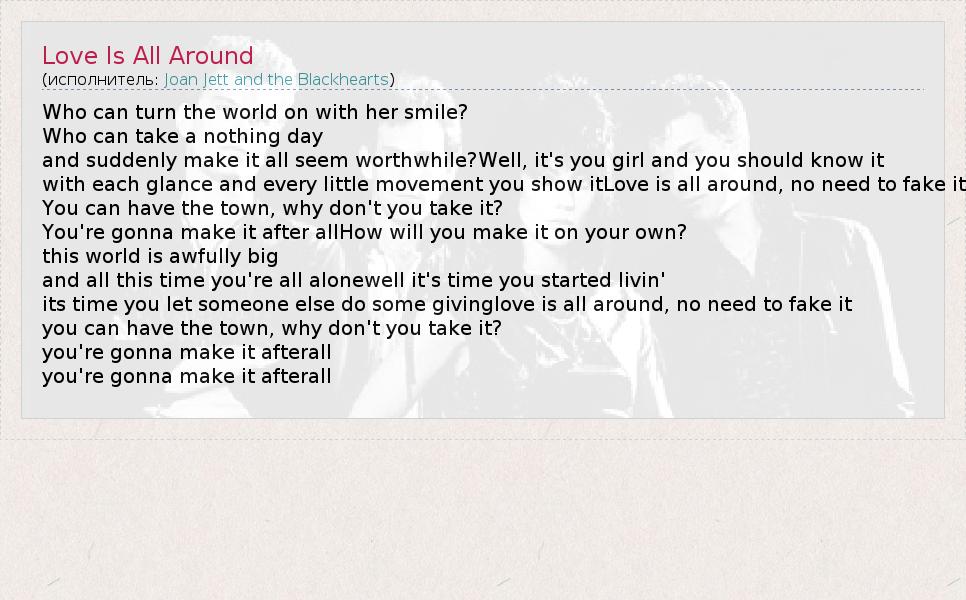 А как ты думаешь, о чем песня "Love Is All Around" ?