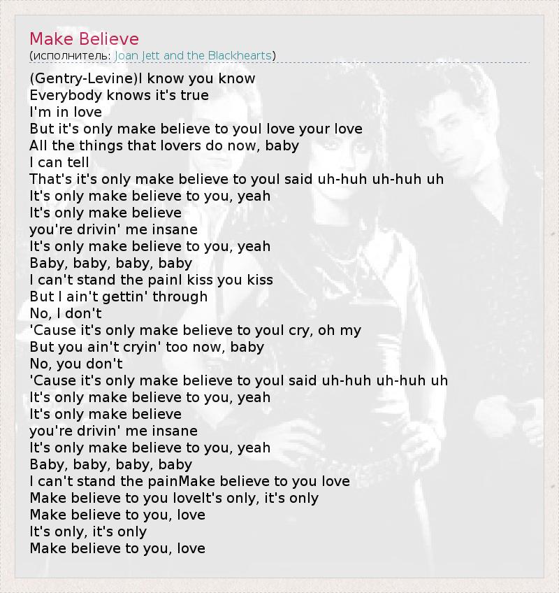 'Cause it's only make believe to youI said uh-huh uh-huh uh