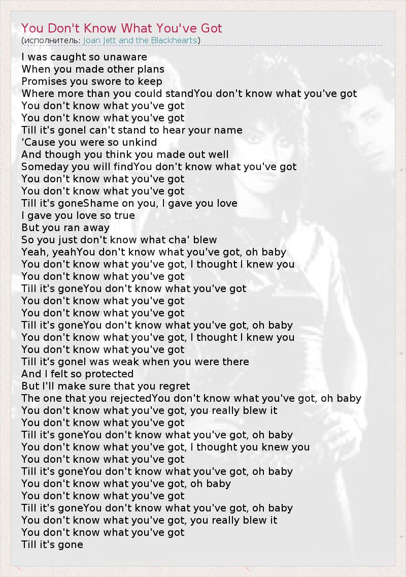 А как ты думаешь, о чем песня "You Don't Know What You've Got" ?