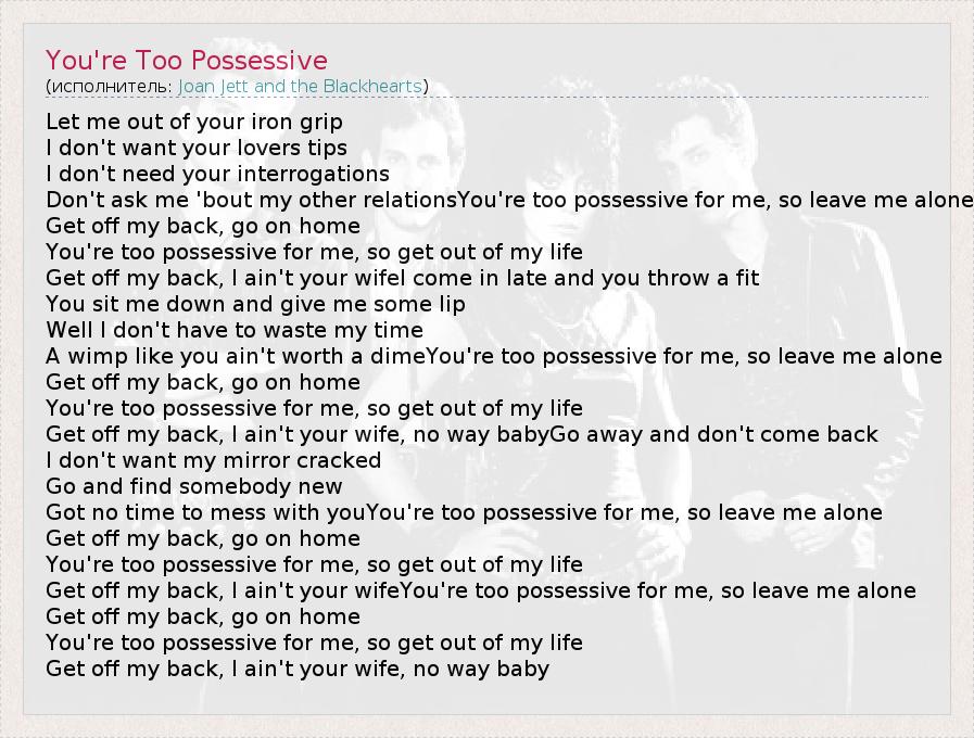 А как ты думаешь, о чем песня "You're Too Possessive" ?