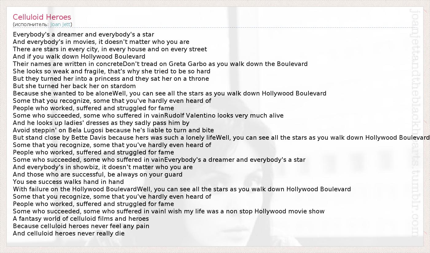 А как ты думаешь, о чем песня "Celluloid Heroes" ?