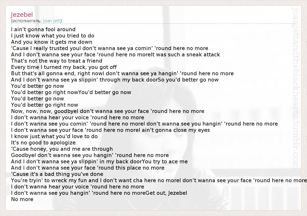 I don't wanna see you hangin' 'round here no moreGet out, Jezebel