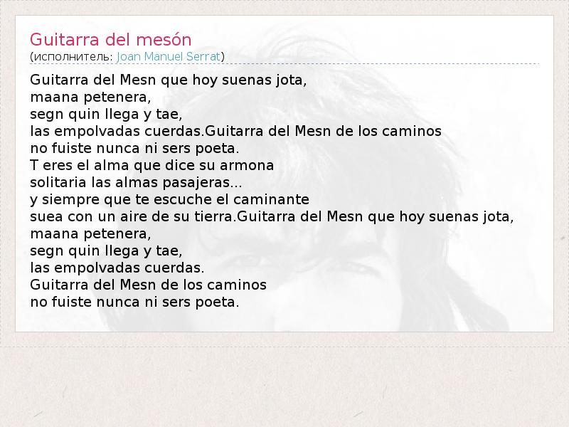 А как ты думаешь, о чем песня "Guitarra del mesón" ?
