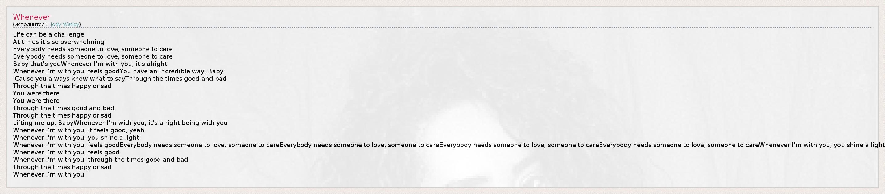 Life can be a challenge At times it's so overwhelming Everybody needs someone to love, someone to care Everybody needs someone to love, someone to care Baby that's youWhenever I'm with you, it's alright Whenever I'm with you, feels goodYou have an incredible way, Baby 'Cause you always know what to sayThrough the times good and bad Through the times happy or sad You were there You were there Through the times good and bad Through the times happy or sad Lifting me up, BabyWhenever I'm with you, it's alright being with you Whenever I'm with you, it feels good, yeah Whenever I'm with you, you shine a light Whenever I'm with you, feels goodEverybody needs someone to love, someone to careEverybody needs someone to love, someone to careEverybody needs someone to love, someone to careEverybody needs someone to love, someone to careWhenever I'm with you, you shine a light Whenever I'm with you, feels good Whenever I'm with you, through the times good and bad Through the times happy or sad Whenever I'm with you