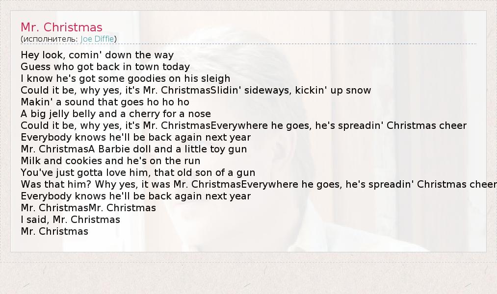А как ты думаешь, о чем песня "Mr. Christmas" ?
