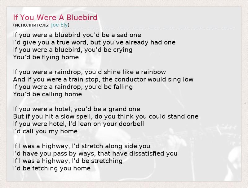 ГлавнаяИсполнителиJoe ElyIf You Were A Bluebird