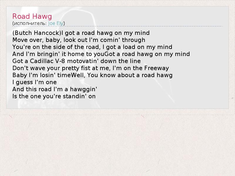 А как ты думаешь, о чем песня "Road Hawg" ?