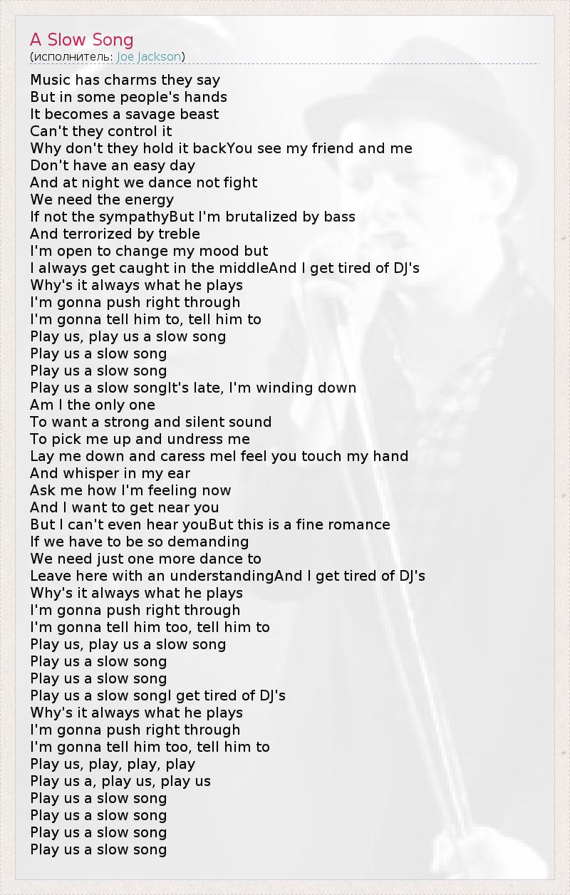 Play us a slow songI get tired of DJ's