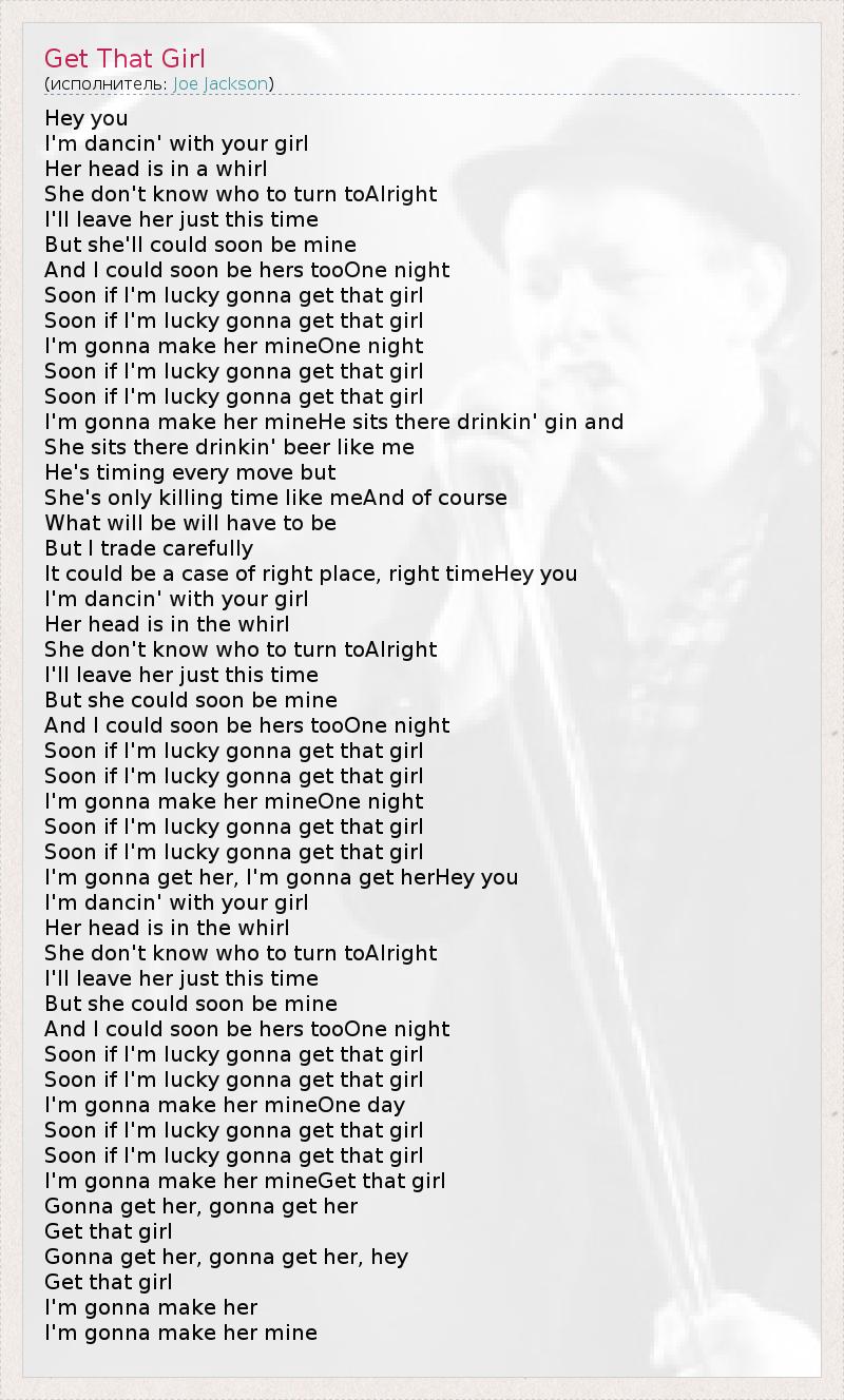 А как ты думаешь, о чем песня "Get That Girl" ?