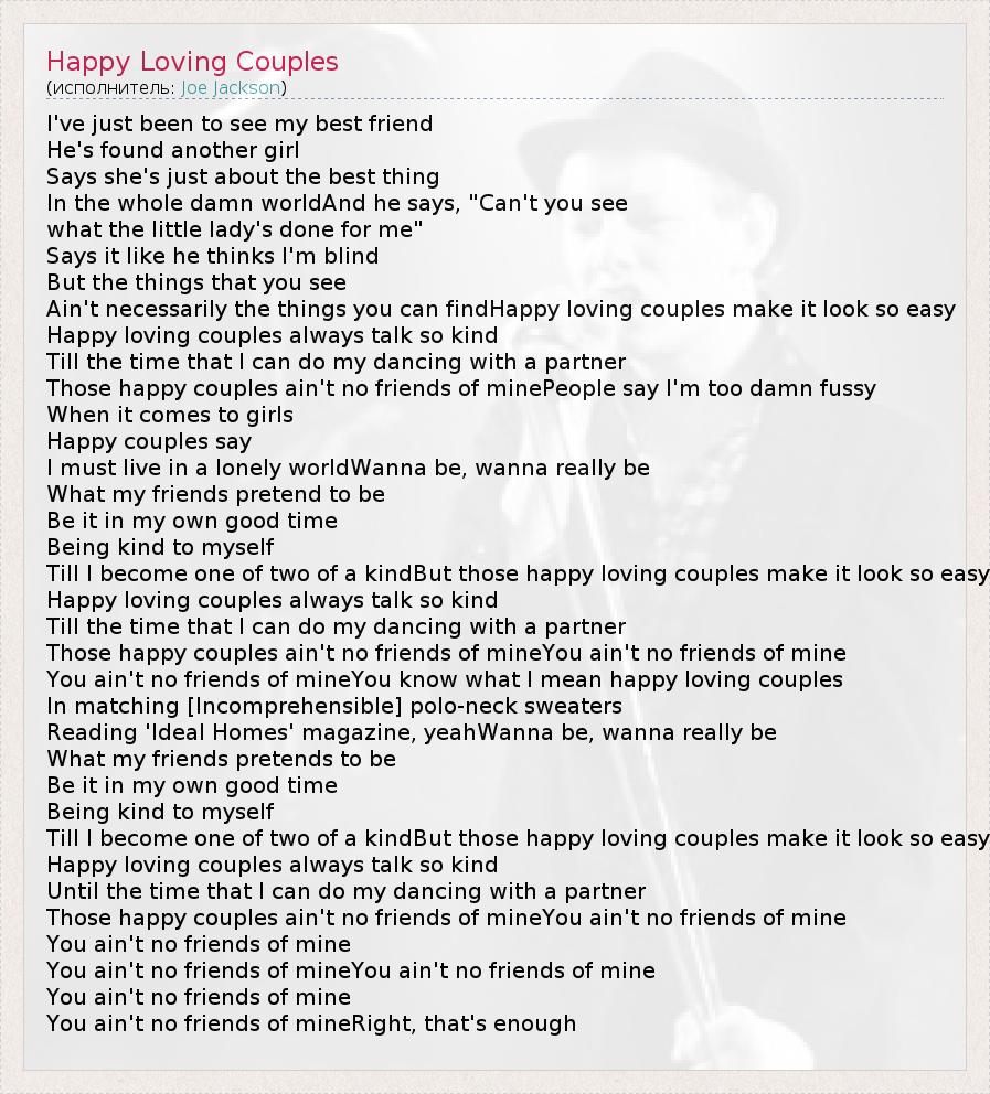 А как ты думаешь, о чем песня "Happy Loving Couples" ?