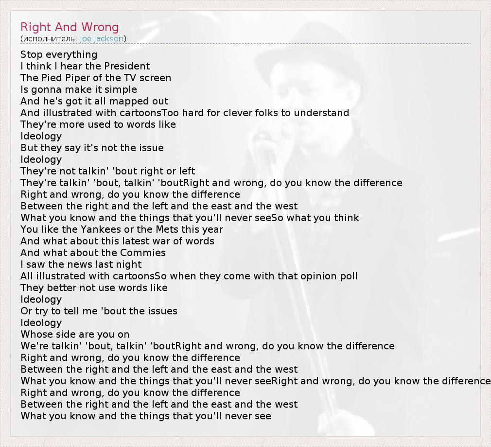 А как ты думаешь, о чем песня "Right And Wrong" ?