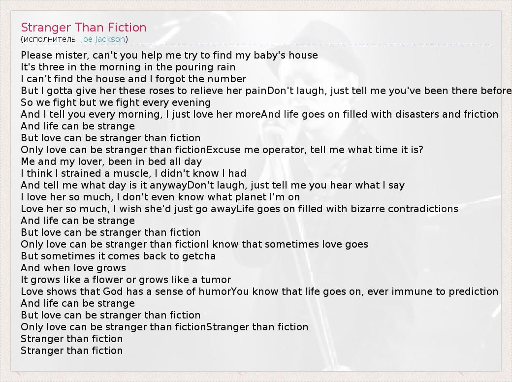 А как ты думаешь, о чем песня "Stranger Than Fiction" ?