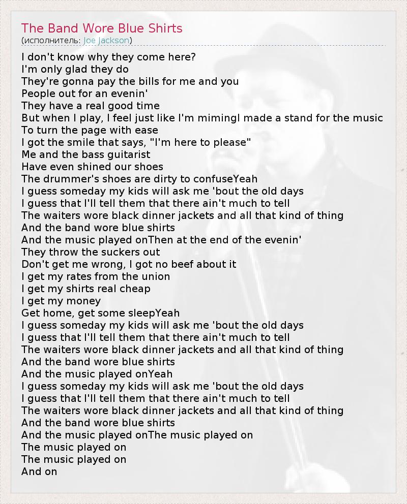 А как ты думаешь, о чем песня "The Band Wore Blue Shirts" ?