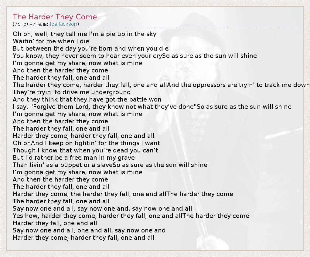 Yes how, harder they come, harder they fall, one and allThe harder they come