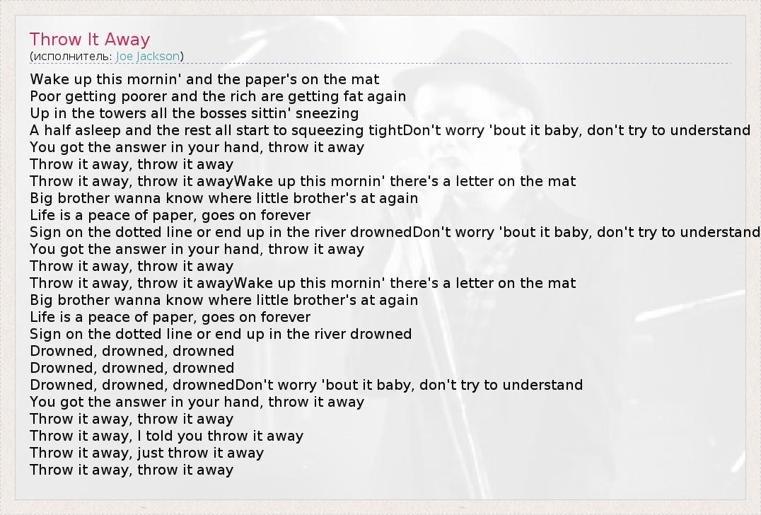 А как ты думаешь, о чем песня "Throw It Away" ?