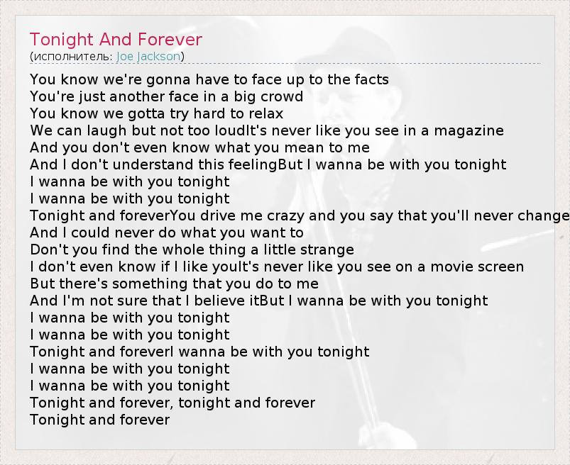 Tonight and forever, tonight and forever