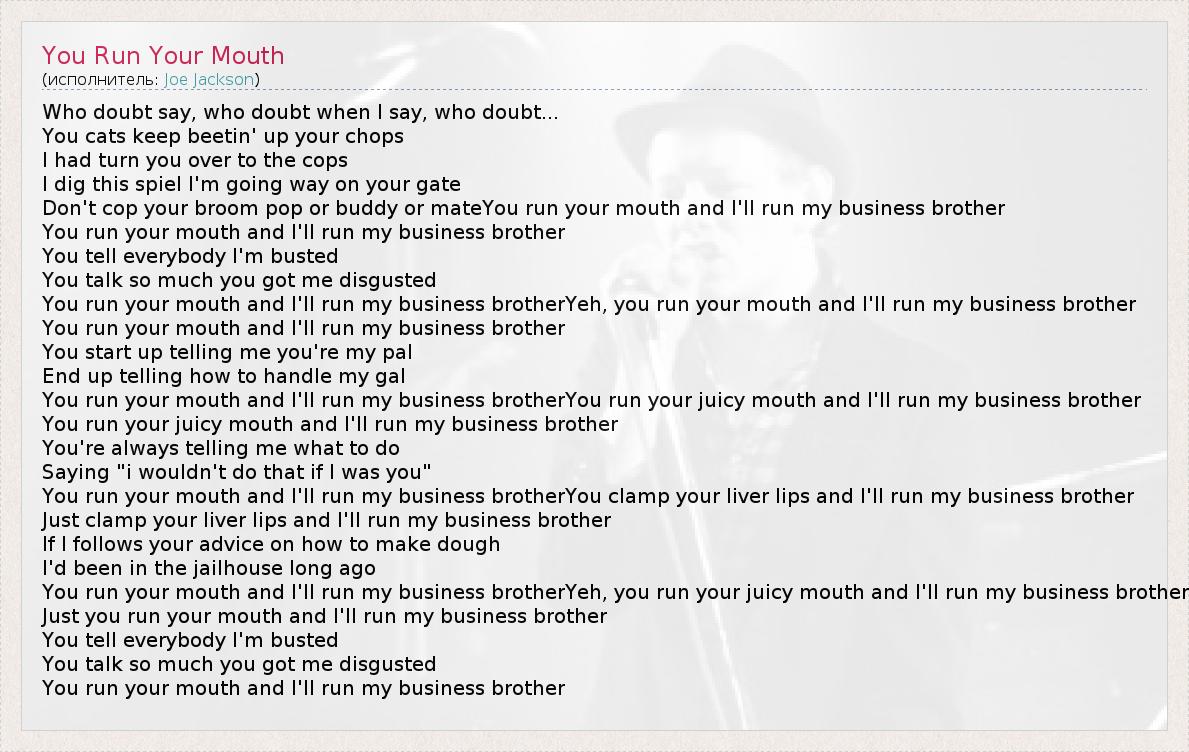 А как ты думаешь, о чем песня "You Run Your Mouth" ?