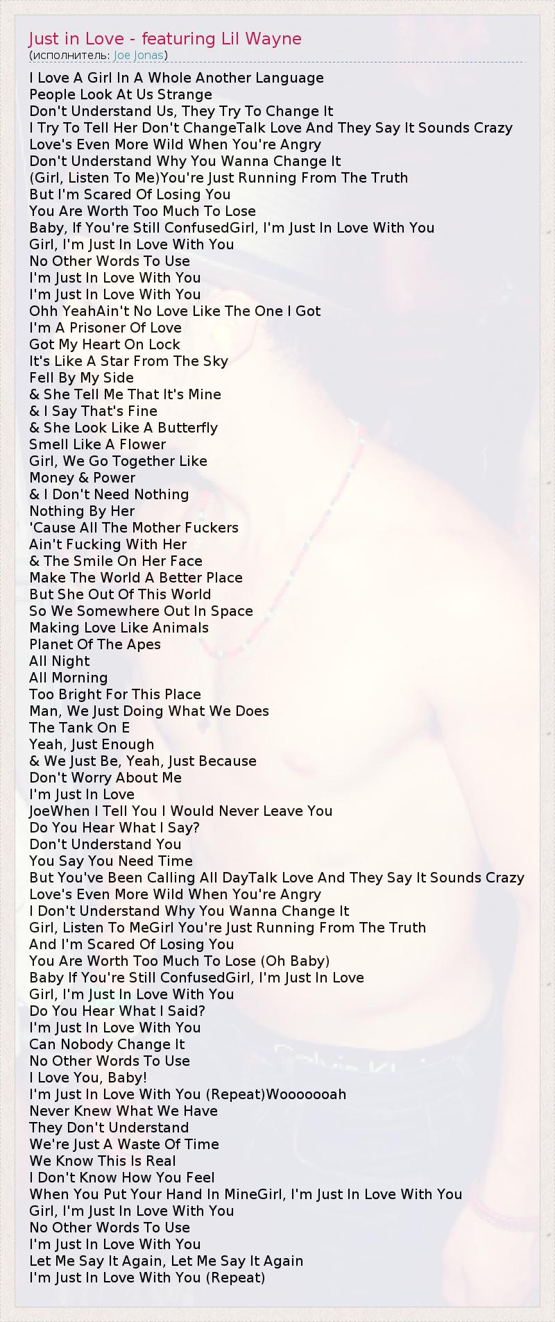 ГлавнаяИсполнителиJoe JonasJust in Love - featuring Lil Wayne