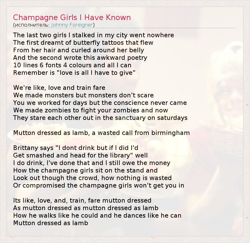 А как ты думаешь, о чем песня "Champagne Girls I Have Known" ?