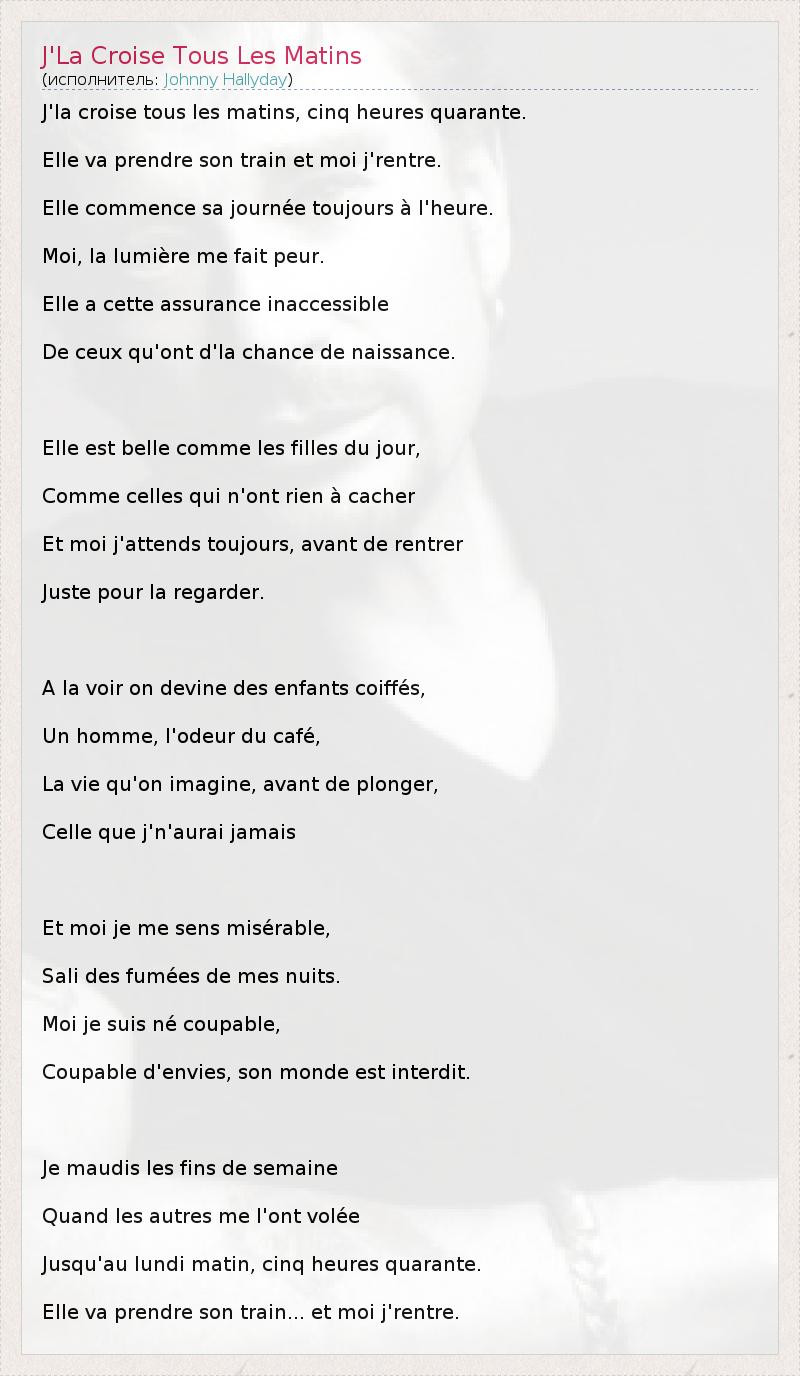 А как ты думаешь, о чем песня "J'La Croise Tous Les Matins" ?
