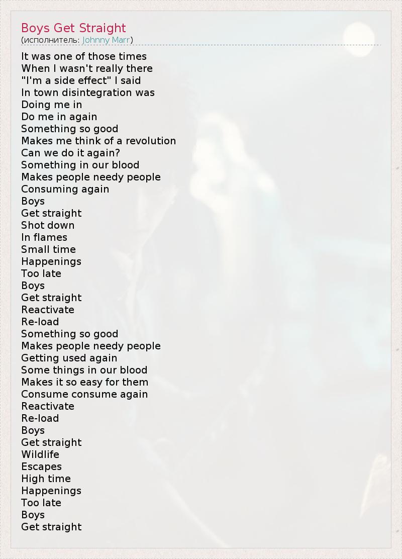 А как ты думаешь, о чем песня "Boys Get Straight" ?