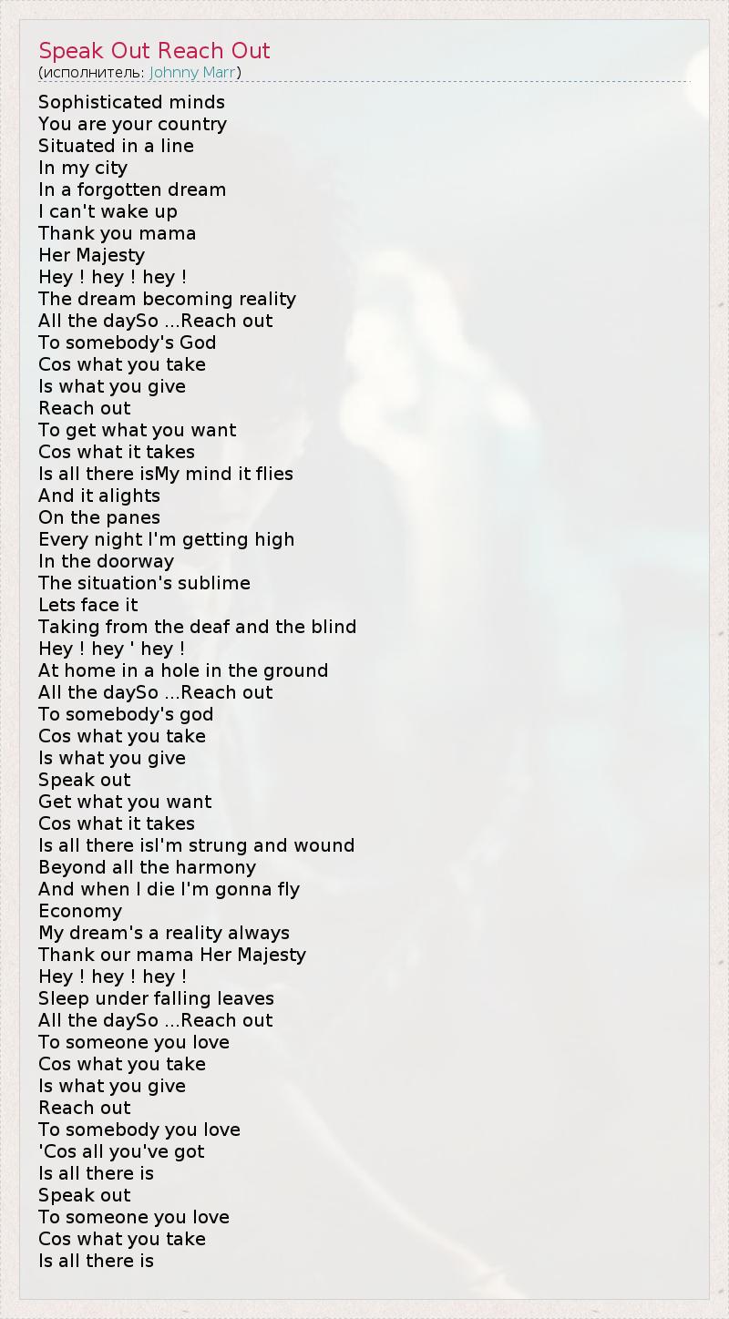 А как ты думаешь, о чем песня "Speak Out Reach Out" ?