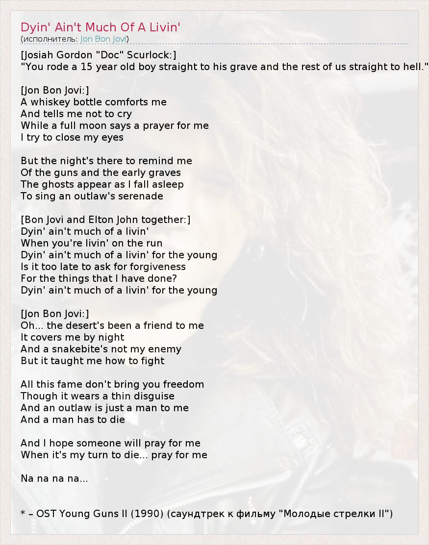 ГлавнаяИсполнителиJon Bon JoviDyin' Ain't Much Of A Livin'