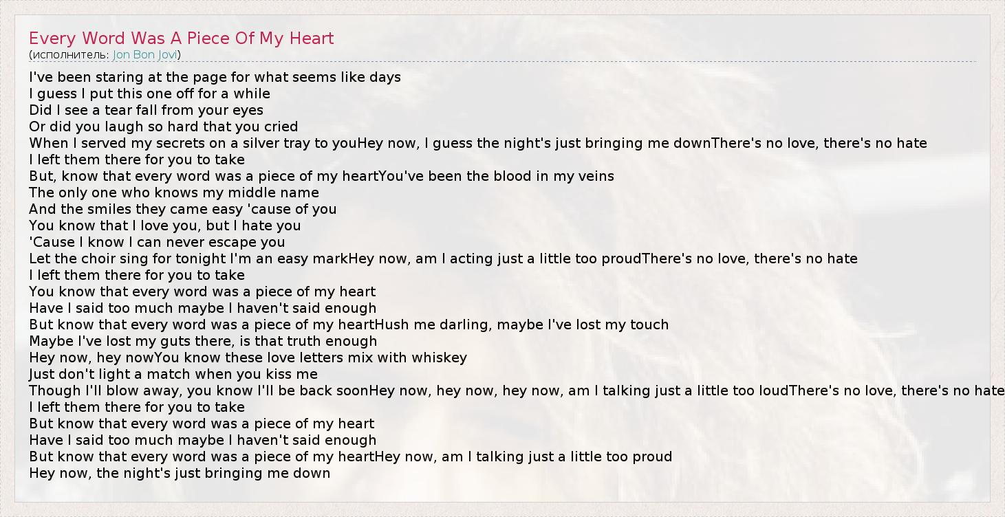Every Word Was A Piece Of My Heart