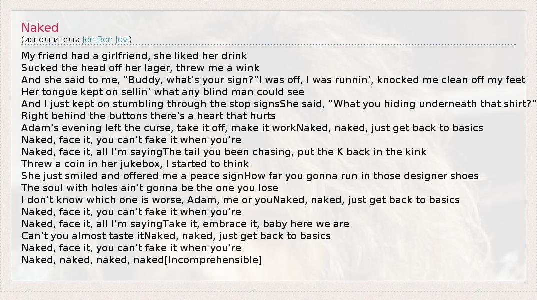 And I just kept on stumbling through the stop signsShe said, "What you hiding underneath that shirt?"