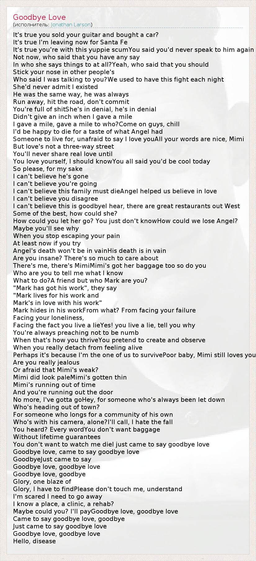 А как ты думаешь, о чем песня "Goodbye Love" ?