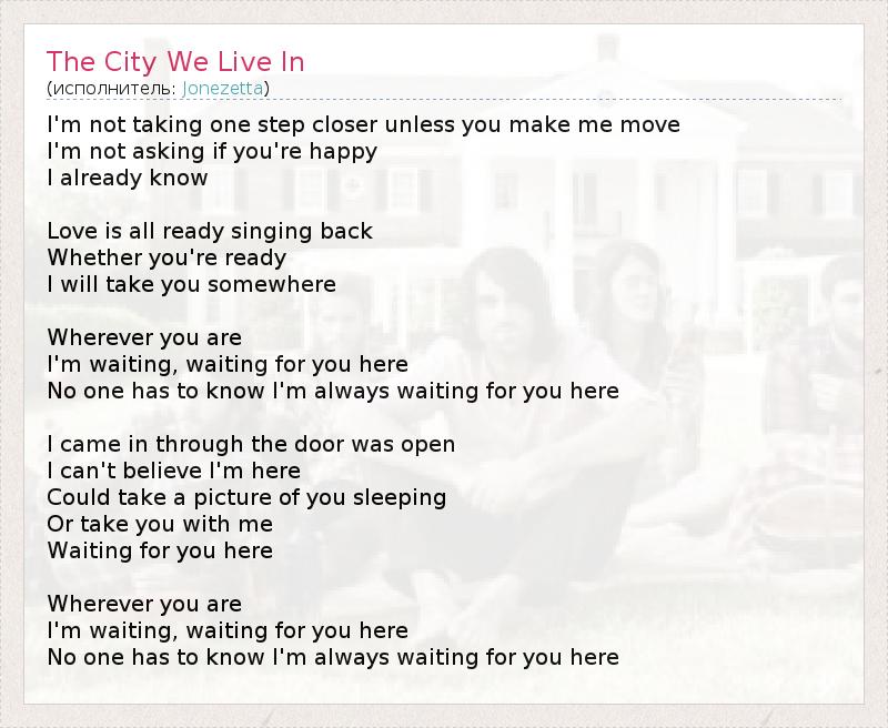 А как ты думаешь, о чем песня "The City We Live In" ?