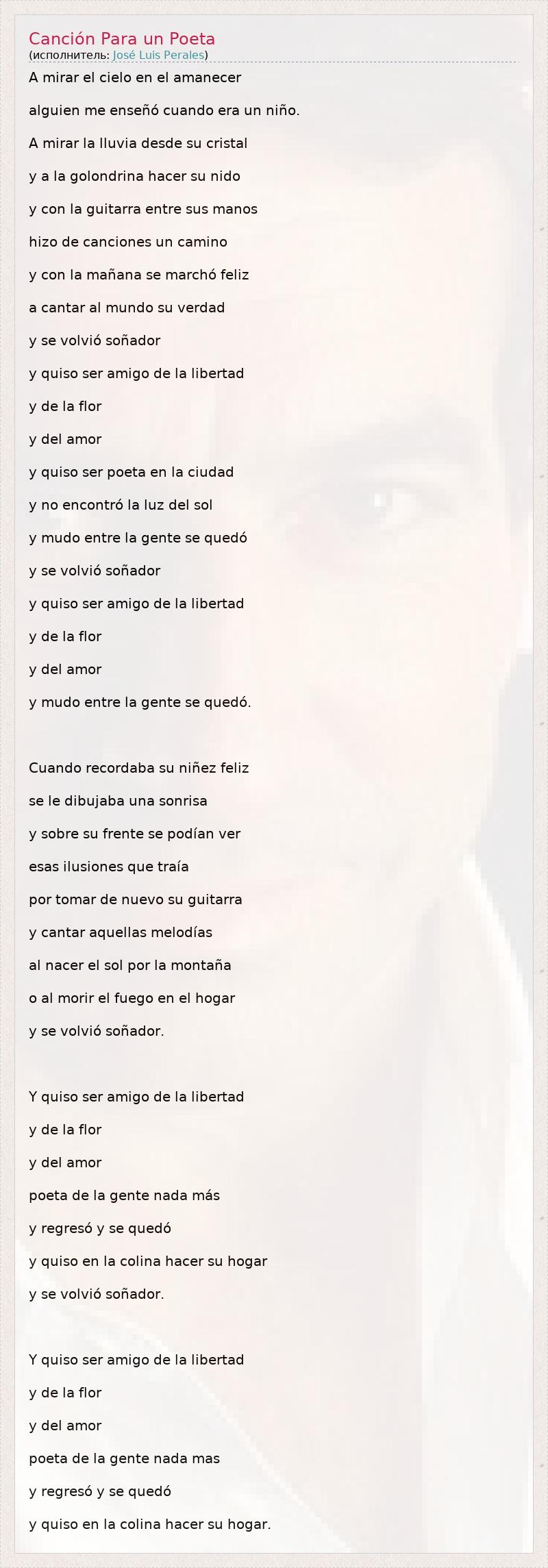 А как ты думаешь, о чем песня "Canción Para un Poeta" ?