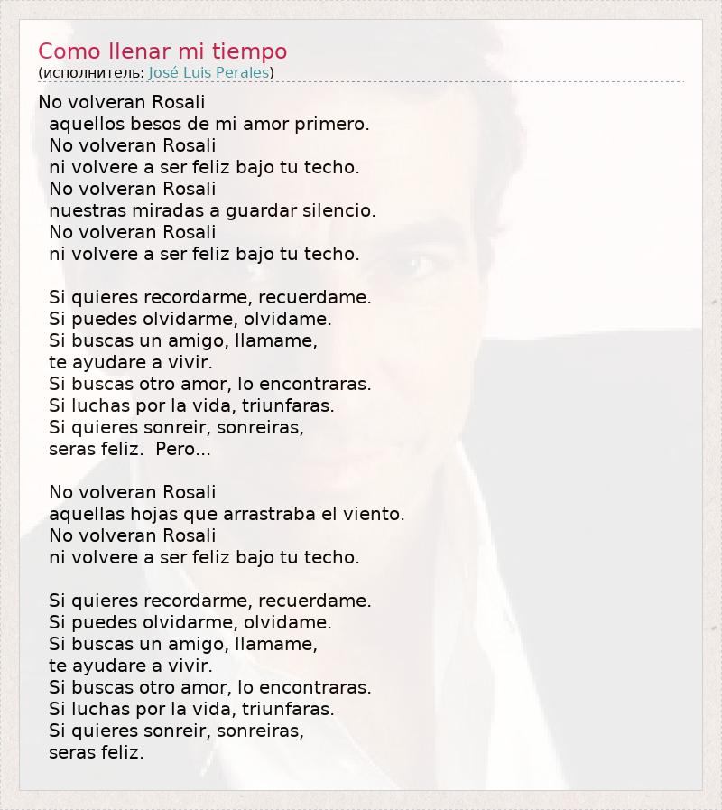 No volveran Rosali aquellos besos de mi amor primero. No volveran Rosali ni volvere a ser feliz bajo tu techo. No volveran Rosali nuestras miradas a guardar silencio. No volveran Rosali ni volvere a ser feliz bajo tu techo. Si quieres recordarme, recuerdame. Si puedes olvidarme, olvidame. Si buscas un amigo, llamame, te ayudare a vivir. Si buscas otro amor, lo encontraras. Si luchas por la vida, triunfaras. Si quieres sonreir, sonreiras, seras feliz. Pero... No volveran Rosali aquellas hojas que arrastraba el viento. No volveran Rosali ni volvere a ser feliz bajo tu techo. Si quieres recordarme, recuerdame. Si puedes olvidarme, olvidame. Si buscas un amigo, llamame, te ayudare a vivir. Si buscas otro amor, lo encontraras. Si luchas por la vida, triunfaras. Si quieres sonreir, sonreiras, seras feliz.