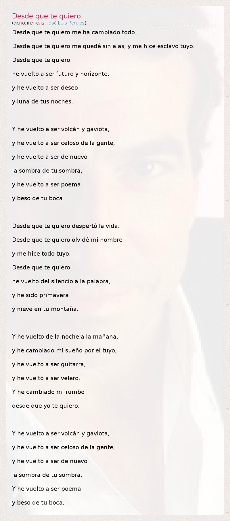 А как ты думаешь, о чем песня "Desde que te quiero" ?