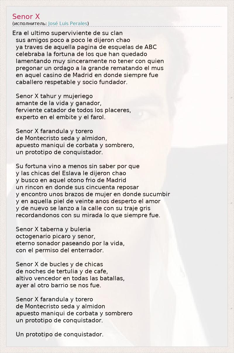 Era el ultimo superviviente de su clan sus amigos poco a poco le dijeron chao ya traves de aquella pagina de esquelas de ABC celebraba la fortuna de los que han quedado lamentando muy sinceramente no tener con quien pregonar un ordago a la grande rematando el mus en aquel casino de Madrid en donde siempre fue caballero respetable y socio fundador. Senor X tahur y mujeriego amante de la vida y ganador, ferviente catador de todos los placeres, experto en el embite y el farol. Senor X farandula y torero de Montecristo seda y almidon, apuesto maniqui de corbata y sombrero, un prototipo de conquistador. Su fortuna vino a menos sin saber por que y las chicas del Eslava le dijeron chao y busco en aquel otono frio de Madrid un rincon en donde sus cincuenta reposar y encontro unos brazos de mujer en donde sucumbir y en aquella piel de veinte anos desperto el amor y de nuevo se lanzo a la calle con su traje gris recordandonos con su mirada lo que siempre fue. Senor X taberna y buleria octogenario picaro y senor, eterno sonador paseando por la vida, con el permiso del enterrador. Senor X de bucles y de chicas de noches de tertulia y de cafe, altivo vencedor en todas las batallas, ayer al otro barrio se nos fue. Senor X farandula y torero de Montecristo seda y almidon apuesto maniqui de corbata y sombrero un prototipo de conquistador. Un prototipo de conquistador.