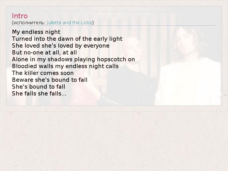 Это интересно:США, г. Лос-Анджелес (Калифорния)Наверняка большинство людей, знающих ее имя, в первую очередь помнят Джульетт Льюис в качестве киноактрисы, снявшейся в таких фильмах, как «Мыс страха», «Прирожденные убийцы» и «Странные дни». Однако Джульетт признается, что музыка всегда была ничуть не менее, а может, даже более важна для нее, чем кино. Наверняка те зрители, что запомнили ее благодаря... продолжение