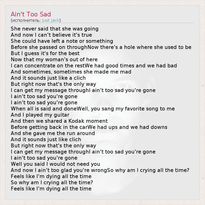 А как ты думаешь, о чем песня "Ain't Too Sad" ?